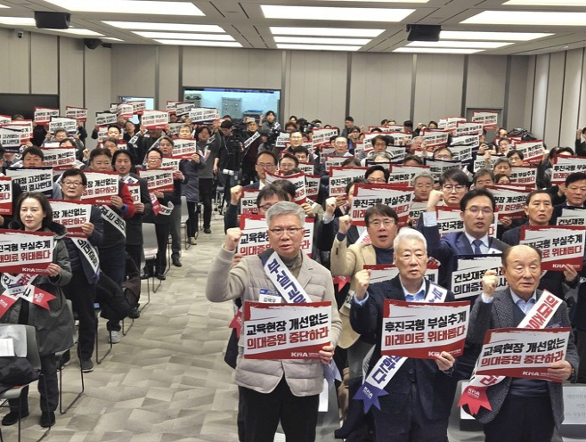대한의사협회(의협)가 정부의 2027학년도 의과대학 정원 증원 논의와 관련해 중단을 촉구했다. 의협은 31일 서울 용산구 의협회관에서 '합리적 의대 정원 정책을 촉구하는 전국의사대표자회의'를 열고 "정부는 앞으로 다가올 2027년 의학교육 현장의 현실을 인정하고 졸속 증원을 즉각 중단하라"고 밝혔다. 의협은 "강의실도, 교수도 없는 현장에서 수천 명의 학생을 한데 몰아넣는 것은 정상적인 교육이라 할 수 없다"며 "현장이 수용할 수 없는 그 어떤 숫자도 결코 용납하지 않을 것"이라고 강조했다. 이어 "준비되지 않은 의대 증원은 수백..