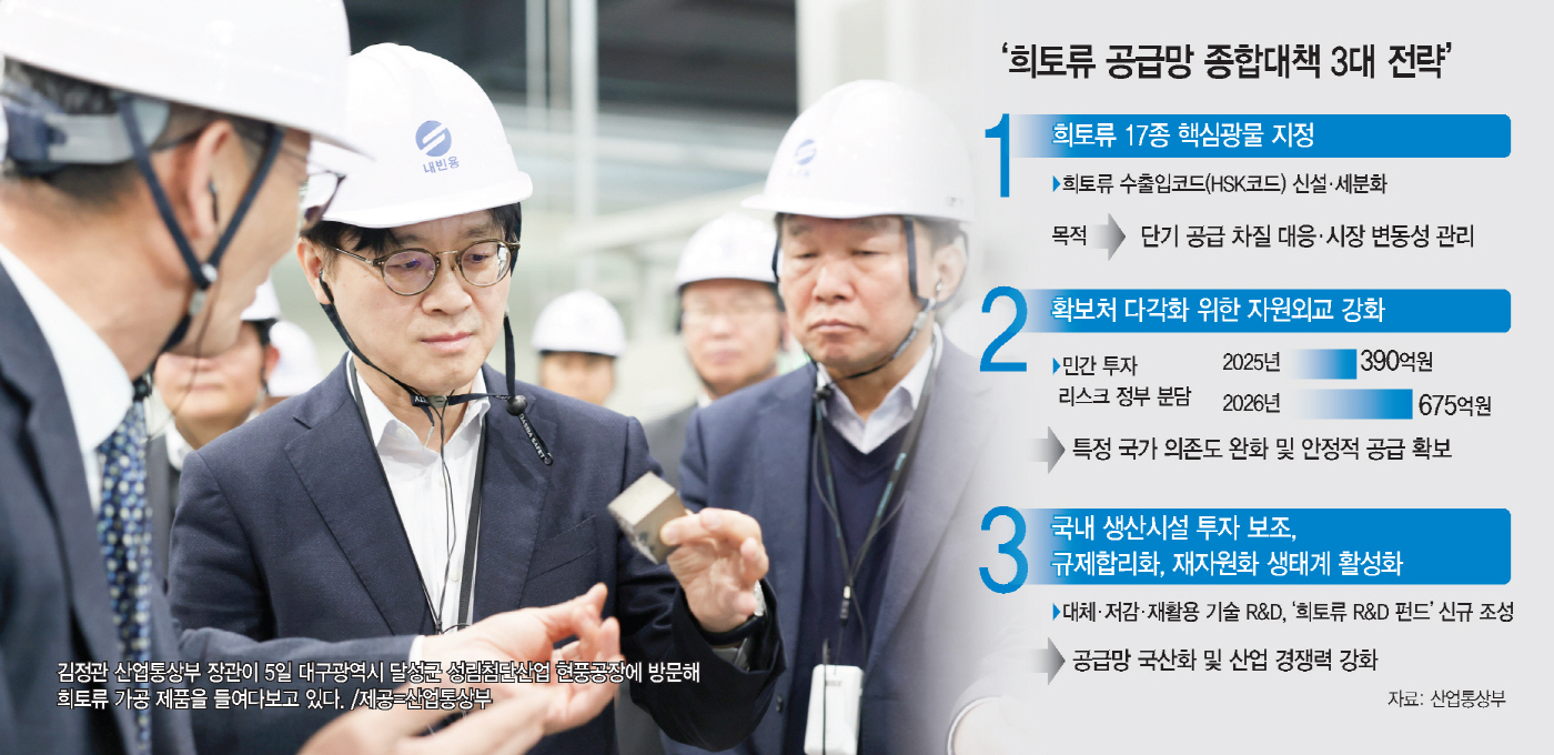 정부가 희토류 공급망 안정화를 위한 종합대책을 내놓으며 글로벌 자원 경쟁 대응에 본격적으로 나섰다. 특정 국가 의존도를 낮추고 수급 관리부터 해외 자원개발, 생산 내재화까지 전 주기 대응체계를 구축하겠다는 전략이다. 산업통상부는 5일 '희토류 공급망 종합대책 3대 전략'을 발표했다. 이번 대책은 자원 확보 단계(업스트림)부터 국내 정제·가공 및 재자원화(미드스트림), 최종 제품 생산(다운스트림)까지 전 과정을 아우르는 첫 종합 대응 방안이라는 점에서 의미가 있다. 산업부 산업자원안보실 출범 이후 처음 발표된 정책이기도 하다. 양기욱..