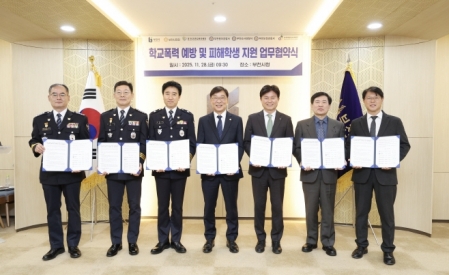 경기 부천시는 28일 시청 만남실에서 '학교폭력 예방 및 피해 학생 지원을 위한 업무협약'을 체결했다고 밝혔다. 이날 협약에는 부천시를 비롯해 부천시의회, 부천교육지원청, 부천원미·소사·오정경찰서, 부천여성청소년재단 등 7개 기관이 참여했으며 학교폭력 예방과 피해 학생의 신속한 회복 지원을 위해 지역사회가 협력체계를 강화하기 위한 것이다. 협약식에는 조용익 시장, 김병전 시의회 의장, 김태성 부천교육지원청 교육장, 김형률 원미경찰서장, 손창권 소사경찰서장, 이규환 오정경찰서장, 이강인 부천여성청소년재단 대표이사 등이 참석했다...