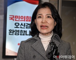 국민의힘 대구시장 후보 경선에서 컷오프된 이진숙 전 방송통신위원장이 24일 서울 여의도 국민의힘 중앙당사에서 경선 결과에 대한 입장을 밝히고 있다.