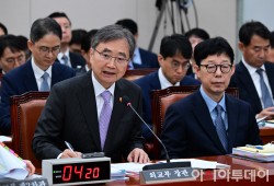 조현 외교부 장관이 13일 국회 외교통일위원회에서 열린 외교부 등에 대한 국정감사에서 의원들의 질의에 답변하고 있다.
