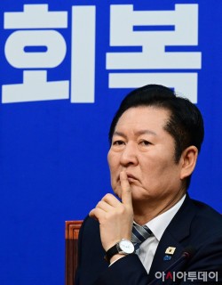 정청래 더불어민주당 대표가 25일 국회에서 열린 최고위원회의에서 생각에 잠겨 있다.