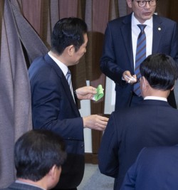 김병기 무소속 의원이 25일 국회에서 열린 본회의에 참석해 전날 상정된 3차 상법개정안에 대한 무제한 토론(필리버스터) 종결을 위한 투표를 마친 뒤 이동하고 있다.