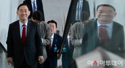 6.3 지방선거 국민의힘 대구시장 경선에서 컷오프(공천 배제)된 주호영 국회부의장이 8일 국회 소통관에서 컷오프 관련 기자회견을 하기 위해 들어서고 있다.