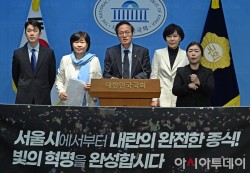 박주민·서영교·전현희 더불어민주당 의원과 김형남 전 군인권센터 사무국장 등이 23일 국회 소통관에서 '서울부터 내란 완전종식 빛의 혁명 완성' 기자회견을 하고 있다.