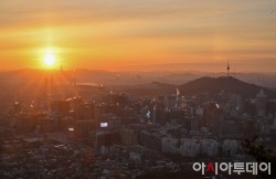 2026년 병오년(丙午年) 새해 첫날인 1일 오전 서울 인왕산 정상에서 바라본 서울 도심에 새해 첫 해가 떠오르고 있다. /정재훈 기자