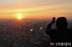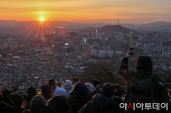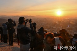 2026년 병오년(丙午年) 새해 첫날인 1일 오전 서울 인왕산정상에서 시민들이 새해 첫 해돋이 사진을 찍고 있다. /정재훈 기자