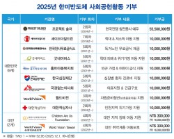 한미반도체는 연말연시를 맞아 국내외 11개 사회공헌 단체에 1억7000만원 규모의 장학금과 기부금을 지원했다고 19일 밝혔다.한미반도체는 ESG경영의 일환으로 2019년부터 홀트아동복지회, 세이브더칠드런, 전국천사무료급식소, 굿네이버스, 한국심장재단, 국경없는의사회, 월드비전, 대한적십자사, 프로젝트 솔져 등 국내 9개 단체와 대만의 Children Are Us Foundation, World Vision Taiwan 등 해외 2개 단체를 포..