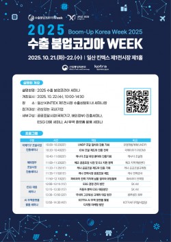 산업통상부는 21일 일산 킨텍스에서 '2025 수출 붐업코리아 Week' 개막식을 개최하고, 다음 달 7일까지 약 3주간 운영한다고 밝혔다.'붐업코리아' 수출상담회는 2015년부터 개최된 국내 최대 수출상담회로, 산업부는 수출-지역경제 동시 활성화를 도모하고자, 작년부터 해당 행사를 중심으로 전국 30여개 산업전시회와 지역 문화·관광을 연계하는 '수출 붐업코리아 Week' 을 개최하고 있다.이번에는 APEC 정상회의 국내 개최를 맞아 세계의..