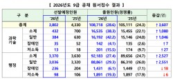 올해 국가공무원 9급 공채 선발시험이 28.6대 1의 경쟁률을 기록했다. 2년 연속 상승세다.인사혁신처는 7일 이 같은 2026년도 국가공무원 9급 공개경쟁채용 선발시험 응시원서 접수 결과를 공개했다. 지난 2일부터 6일까지 집계한 원서접수 결과에 따르면 선발예정 인원 3802명에 10만8718명이 지원했다. 올해엔 선발 예정 인원이 전년 대비 감소했으나 응시원서 제출 인원은 3.4%늘어 경쟁률이 4.3대 1높아졌다. 모집직군별로 경쟁률을 살..