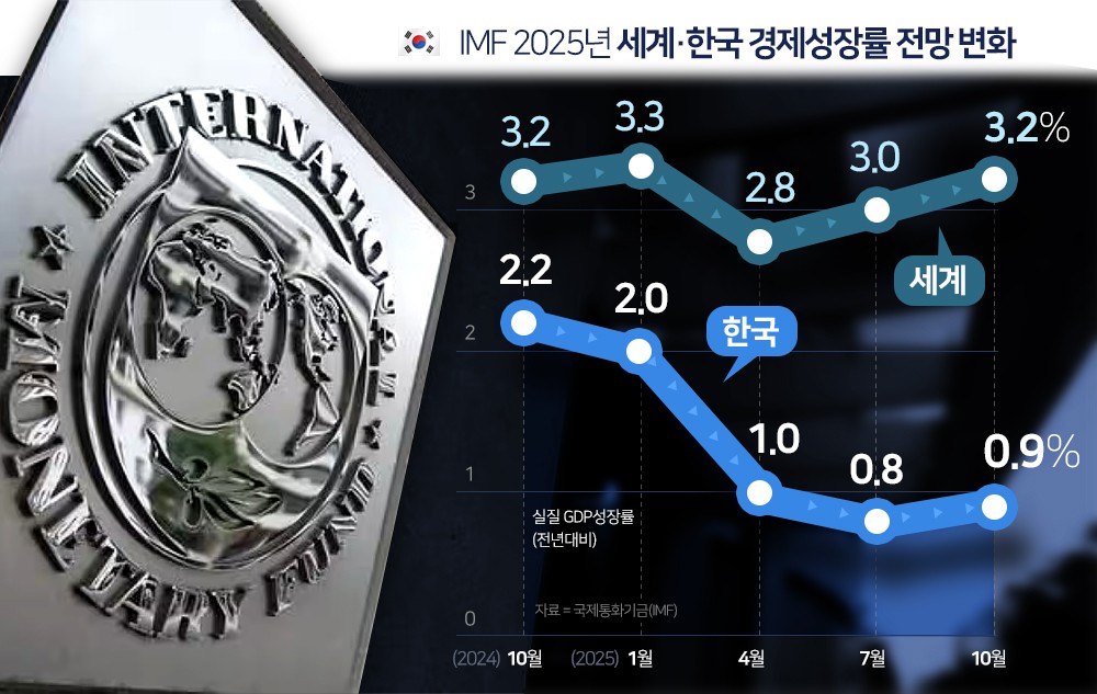 14일 기획재정부에 따르면 IMF는 이날 발표한 '10월 세계경제전망'에서 한국의 올해 실질 국내총생산(GDP) 성장률을 0.9%로 제시했다. 지난 7월 전망치(0.8%)와 비교하면 0.1%포인트(p) 상향 조정됐다. 이는 9월 연례협의 결과 전망치(0.9%)와는 동일하고, 정부와 한국은행의 공식 전망치(0.9%)와도 같은 수준이다.