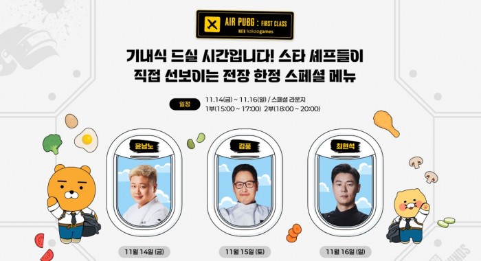 여기에 김풍, 최현석, 윤남노 셰프의 쿠킹쇼가 더해진다. 이들 스타 셰프의 등장은 'AIR PUBG: First Class'를 고급 라이프스타일 이벤트로 격상시킨다.