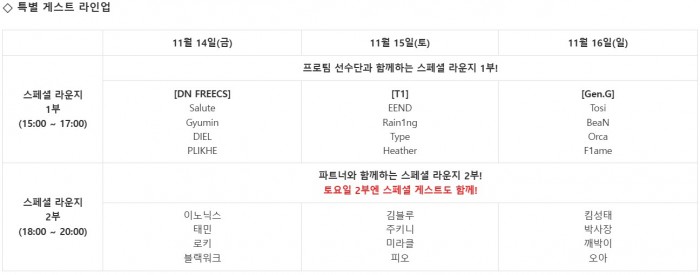 행사 3일간 1부에는 'DN 프릭스', 'T1', '젠지' 등 국내 최정상급 프로게임단 선수들이 총출동한다. 이는 e스포츠 팬들에게는 선수들을 가장 가까이에서 만나고 함께 게임할 수 있는 꿈의 무대다.