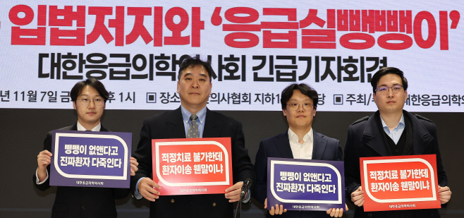 7일 의료계에 따르면 이날 대한응급의학의사회는 긴급기자회견을 열고 지난 4일 국회 보건복지위원회 소속 김윤 더불어민주당 의원이 대표 발의한 '응급의료에 관한 법률 일부개정법률안'에 대해 "현장 고려 없는 탁상행정"이라며 전면 반박했다.