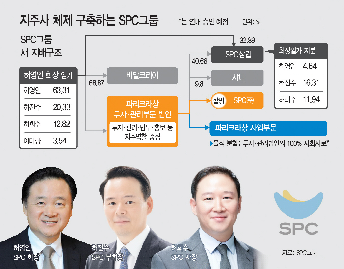 한 재계 관계자는 "지주사 체제는 소유와 경영을 분리하고 의사결정 구조를 투명하게 만드는 동시에 오너의 지배력을 효율적으로 유지할 수 있는 구조"라며 "SPC도 중장기적인 그룹 운영 전략 차원에서 선제적으로 대응하는 것으로 보인다"고 말했다.
