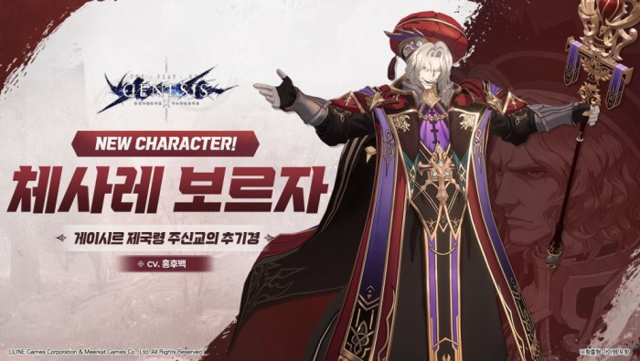 업데이트를 통해 ‘서풍의 광시곡’ 등장 캐릭터인 ‘체사레 보르자’와 전용 무기 ‘부정의 성궤’도 추가됐다. ‘체사레 보르자’는 전투 시 초필살기 ‘뒤틀린 희생’을 사용하며, 전용무기 장착 시 무기 잠재력을 개방할 수 있다.