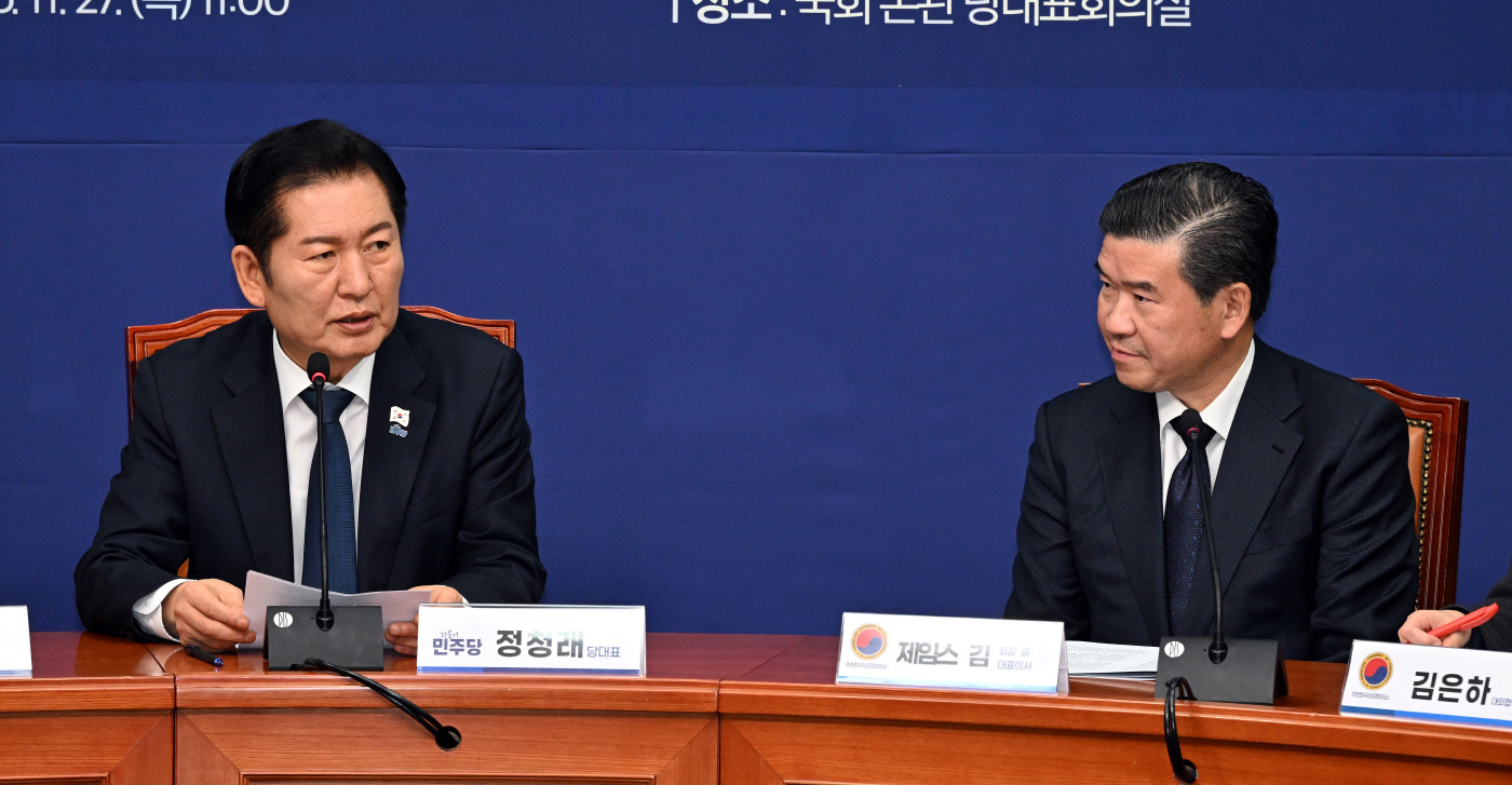 정 대표는 이날 여의도 당사에서 열린 암참 대표단과의 간담회에서 "대한민국은 수출로 먹고 사는 나라다. 대외의존성이 높은 경제 구조를 갖고있어서 외교관계가 매우 중요하다"며 이 같이 말했다. 그는 "외교관계 핵심에 미국이 있다는 것은 두말할 필요도 없다"며 "1년전 12·3 비상계엄 내란 사태 때도 미국이 상당한 우려를 표해준 것이 큰 도움이 됐다고 생각한다"고 강조했다.