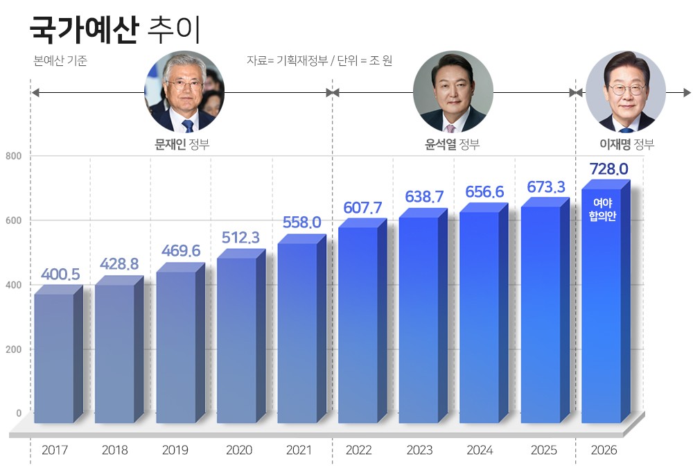 김병기 더불어민주당 원내대표와 송언석 국민의힘 원내대표는 이날 국회에서 기자회견을 열고 이 같은 내용의 '2026년도 예산안 처리를 위한 합의문'을 발표하며, 이날 오후 4시 본회의를 열어 예산안과 관련 부수 법률안 등을 처리하기로 했다고 전했다. 이번 합의에 따라 새 정부의 핵심 국정과제인 지역사랑상품권 발행지원과 국민성장펀드 등은 감액 없이 원안을 유지하게 됐다.