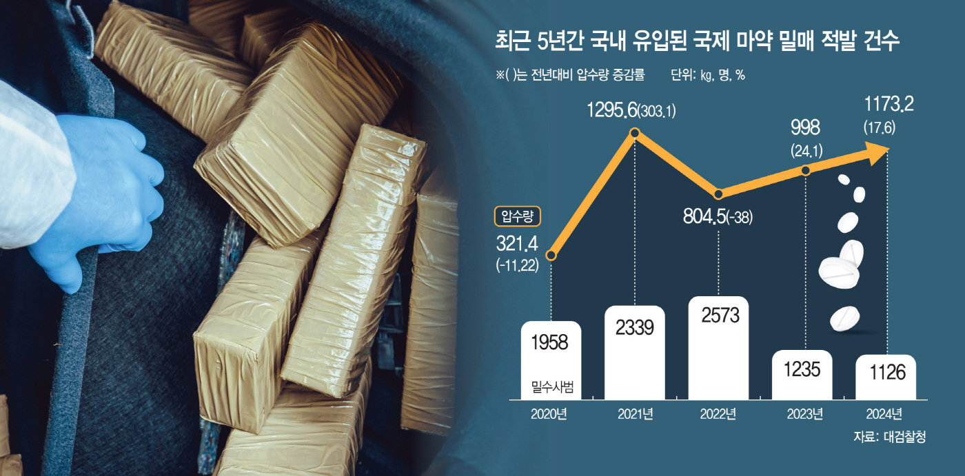 특히 항만과 해상을 통한 대규모 밀반입이 증가하고 있다. 올해 부산항이나 강릉 옥계항에서 대형 선박에 은닉된 코카인 적발 사례가 대표적이다.