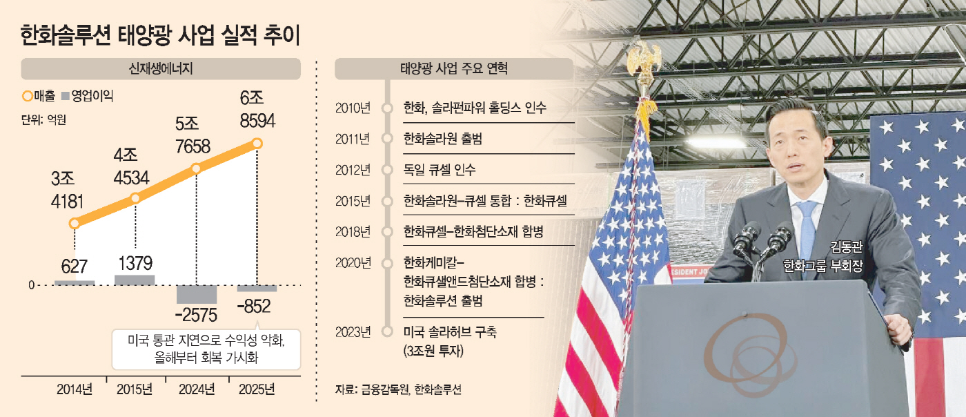 한화솔루션의 태양광 사업이 김동관 부회장의 장기 전략을 실적으로 증명하는 국면에 들어섰다. 세계 각국이 자국 중심의 에너지·공급망 전략을 강화하는 환경 속에서 미국 태양광 시장을 중심으로 구조적 성장 기대가 커지고 있기 때문이다. 지난해 미국 통관 지연으로 수익성이 다소 악화됐지만, 올해는 통관 이슈가 해소된 데다 미국 내에서 태양광 전체 가치사슬(풀 밸류체인) 생산이 가시화된 점도 실적 회복 기대감을 키우는 요인이다.