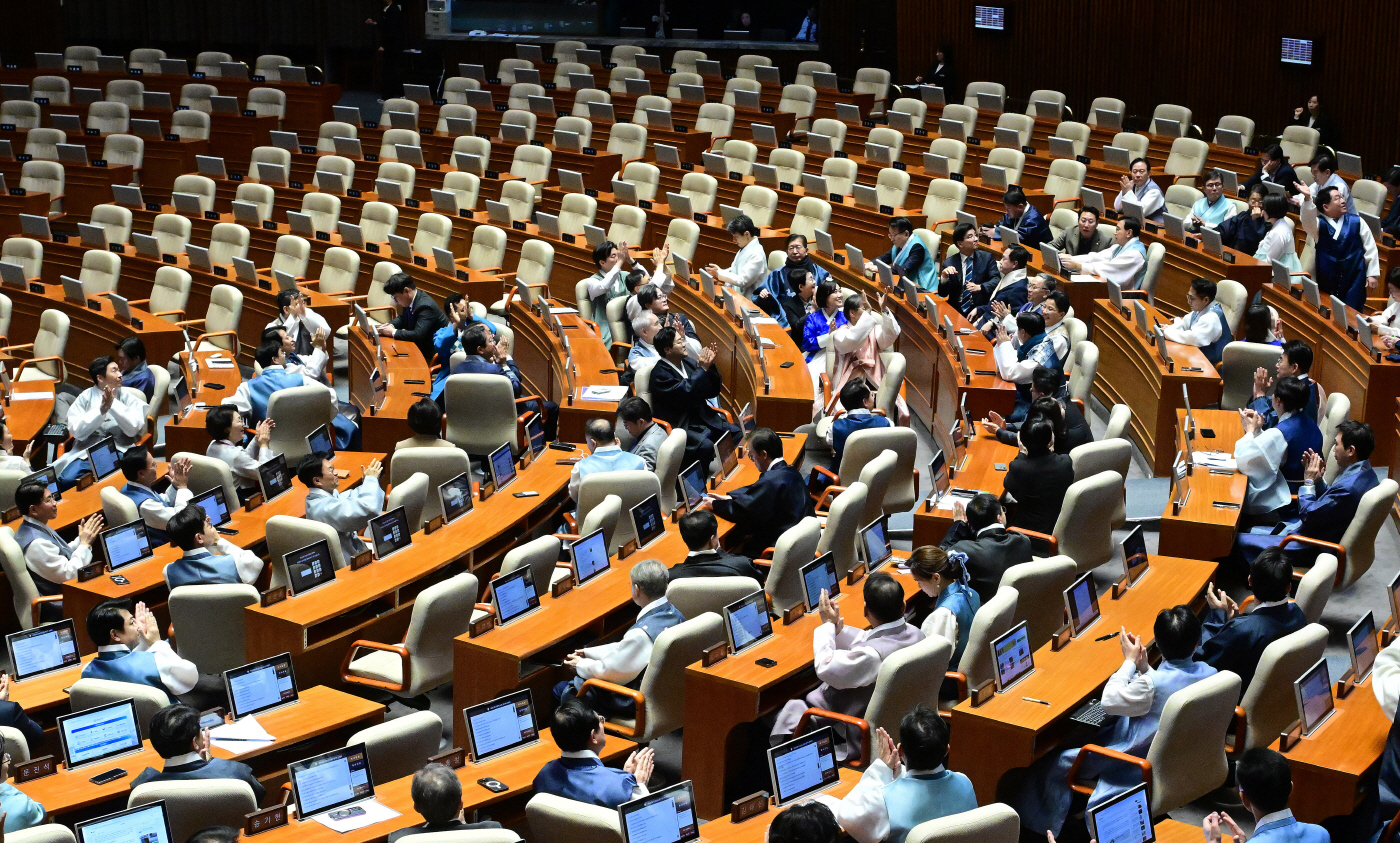 한편 이날 본회의에선 '공천헌금 1억원 수수' 혐의로 구속영장이 청구된 강선우 무소속 의원에 대한 체포동의안도 보고됐다. 현직 국회의원은 회기 중 불체포 특권이 있어 '체포동의안'이 본회의를 통과해야 법원의 구속 전 피의자 심문(영장실질심사)이 열릴 수 있다. 국회법상 국회의장은 체포동의 요구서를 받은 후 처음 개의하는 본회의에서 이를 보고해야 한다. 보고된 때부터 '24시간 이후 72시간 이내' 표결에 부쳐야 한다. 이 시한을 넘길 경우, 그다음에 열리는 첫 본회의에 상정해 표결한다. 재적의원 과반 출석, 출석의원 과반이 찬성하면 가결된다.