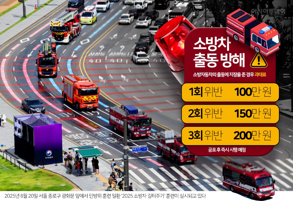 소방차 출동을 방해하면 위반 횟수에 따라 과태료를 최대 200만원까지 물린다.