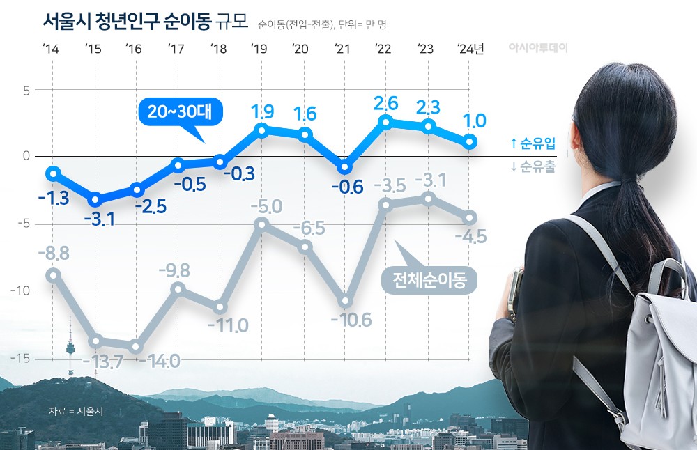 2019년부터 서울로 진입하는 20~30대 청년층은 증가하고 있는 것으로 나타났다.