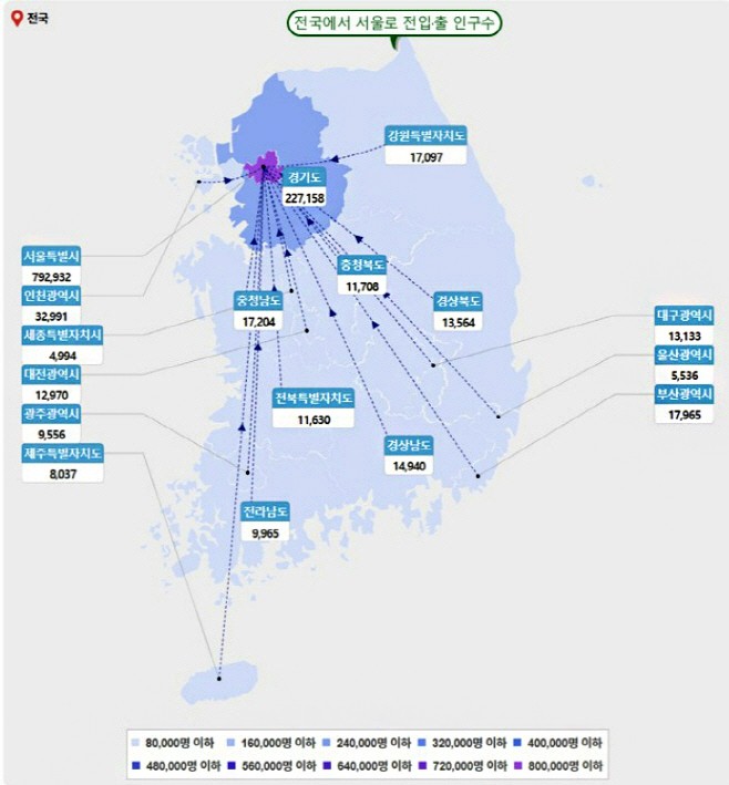 서울시는 지난 24년(2001~2024년)간의 인구 이동 데이터를 분석한 '서울시 인구이동 분석' 결과를 22일 공개했다.